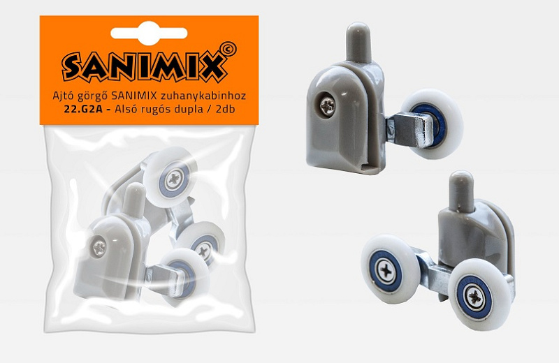 Alsó görgő zuhanykabinhoz, 21 mm, rugós, dupla 2db/cs.