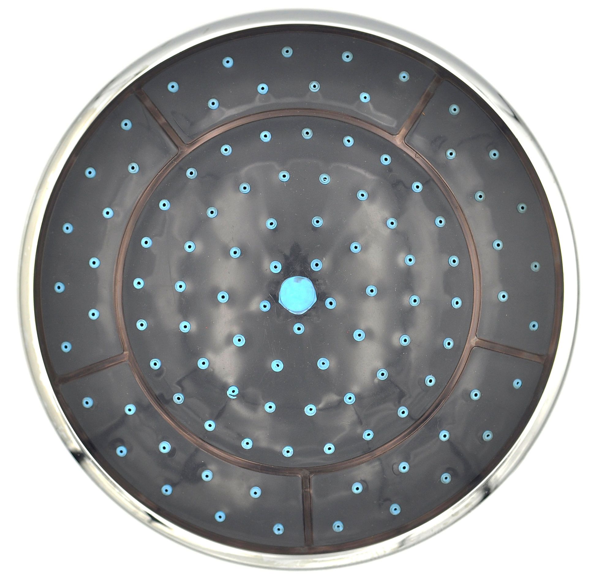 Fekete, kék pöttyös, króm szegéllyel. Külső átmérő: 24,5 cm (Íven mérve: 25 cm). Belső perem: 23 cm. Csomagolás része az esőztetőbe betekerhető csatlakozó szár. Csatlakozása: 1/2 coll. A forgalmazott termékek külső megjelenése és vastagsága kissé eltérhet. Utóbbi a beszerelhetőséget nem akadályozza!