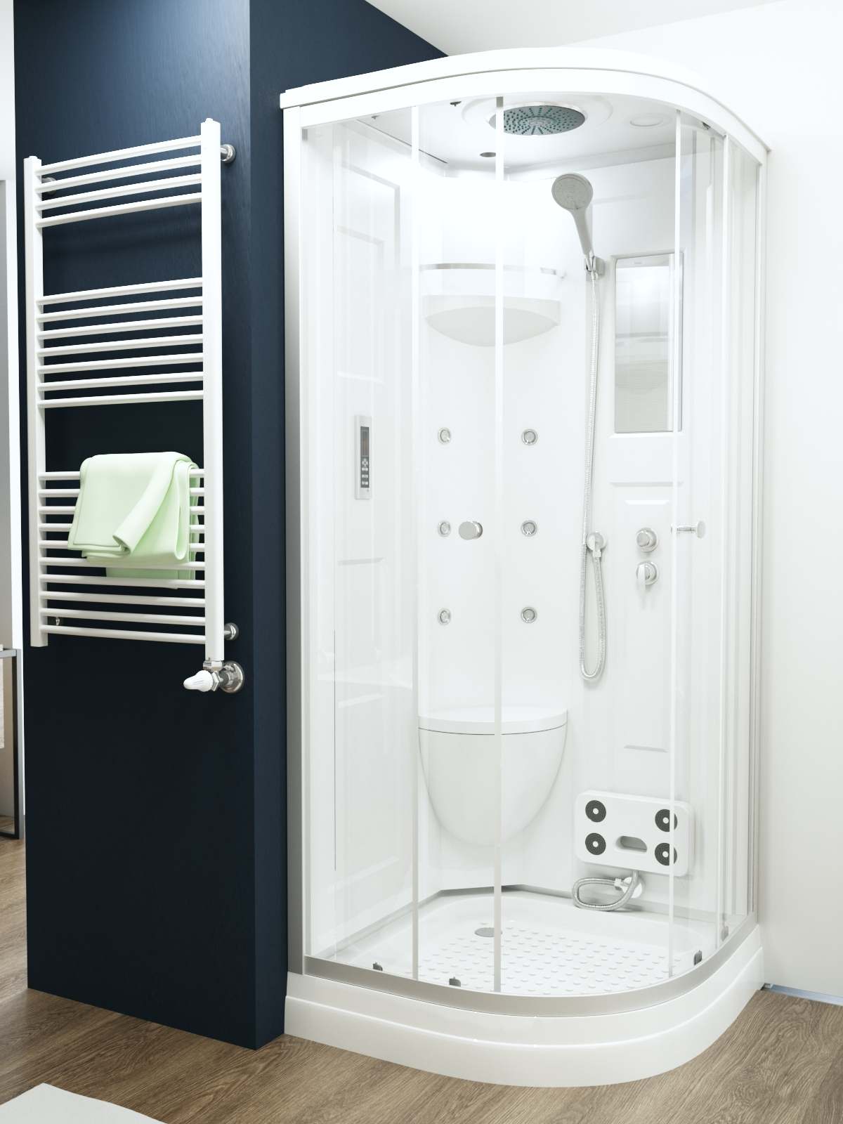 Hidromasszázs zuhanykabin elektronikával negyedköríves 90x90x222