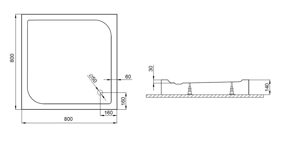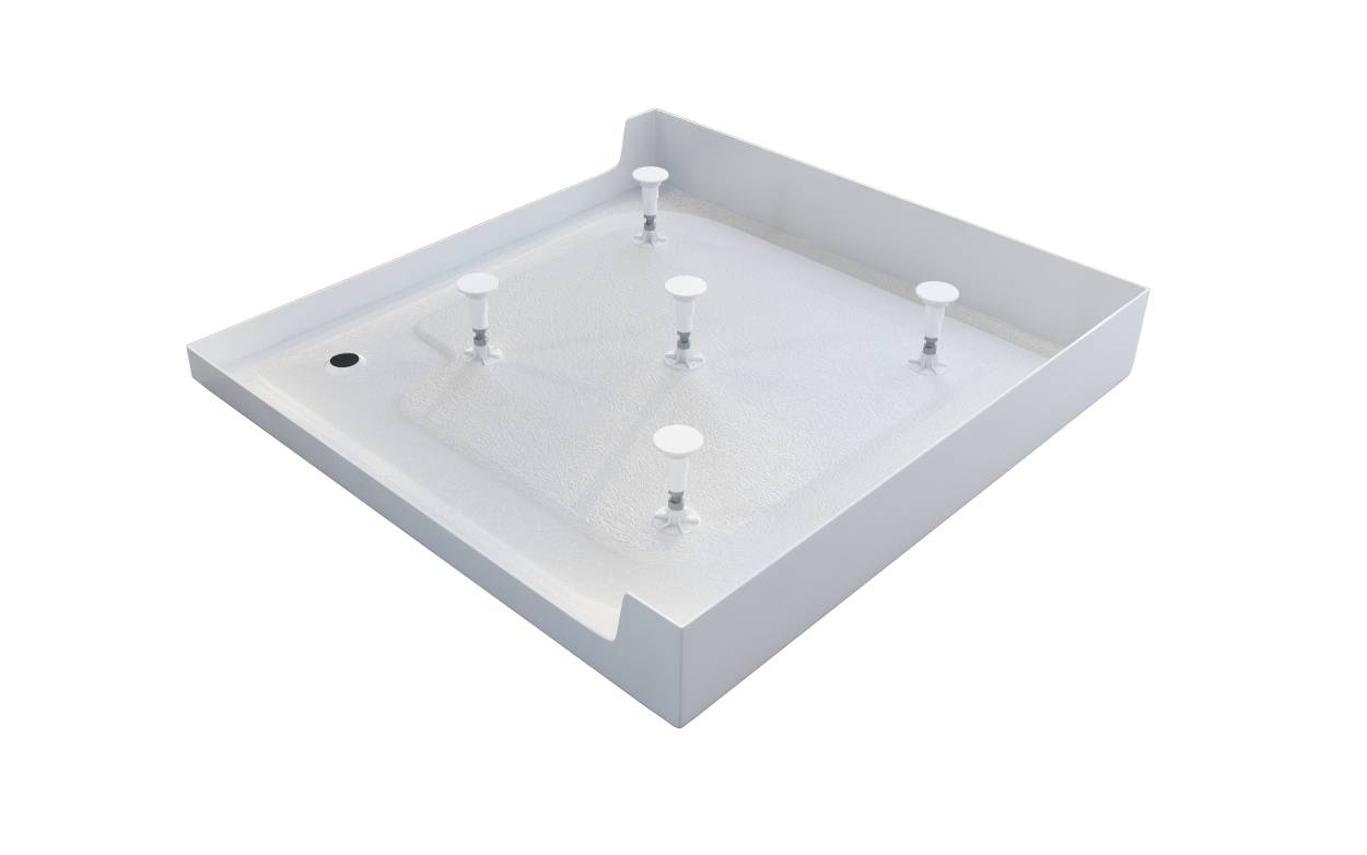 Szögletes, üvegszál erősítésű, alacsony akril tálca, integrált merevítéssel, szintező lábakkal és fali tartó konzollal. Kialakításának köszönhetően pontos állíthatóság és stabil , megbízható használat. 80x80x14 cm Szifon nem tartozék, külön rendelhető. Szifon átmérő 50mm. EU gyártmány